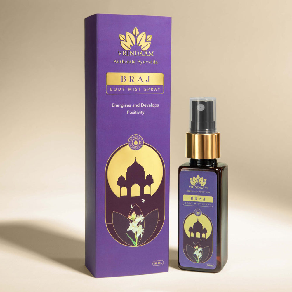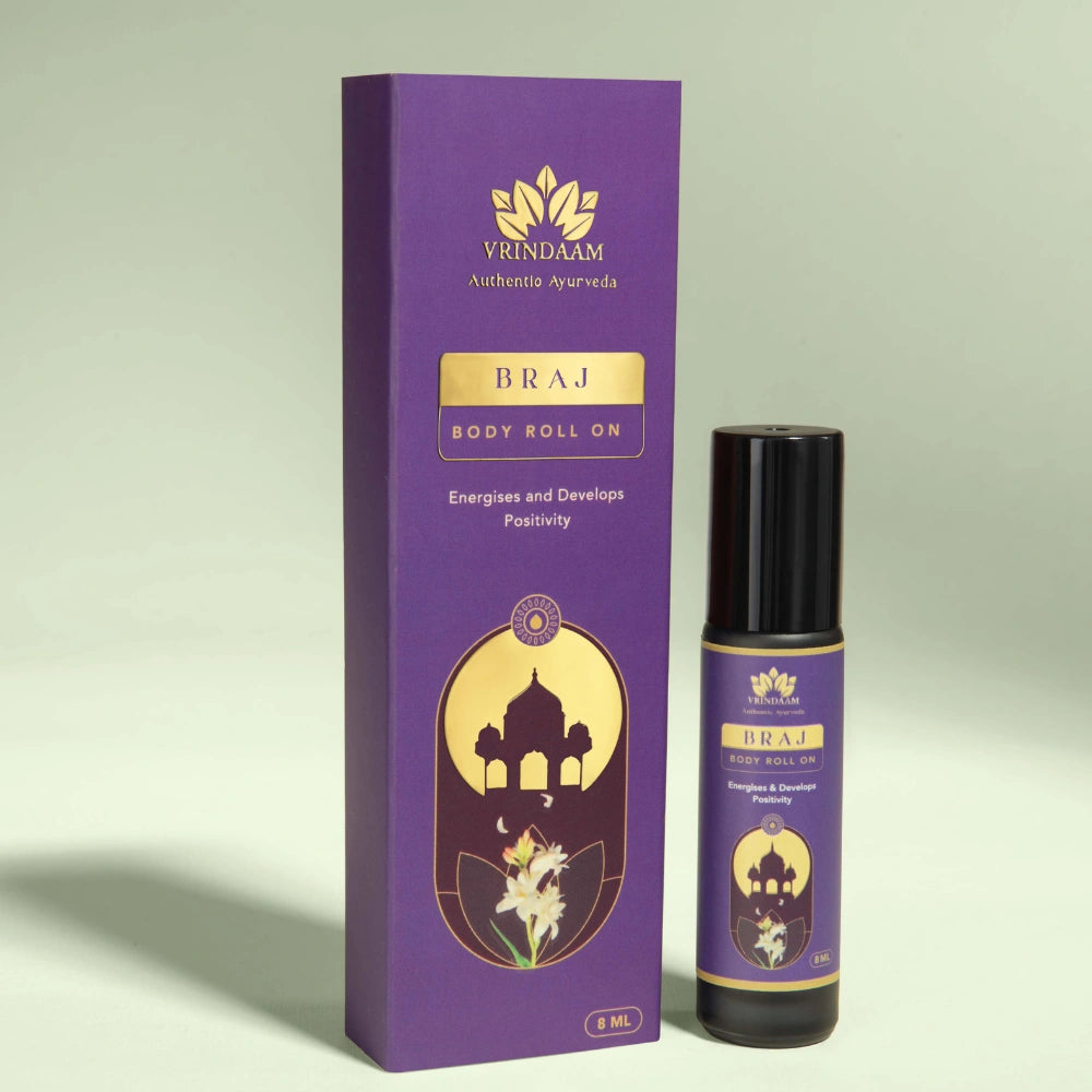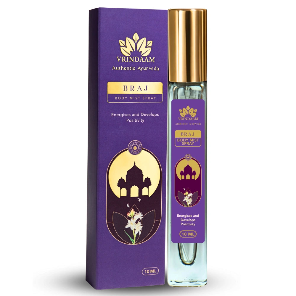 Inspired by the eternal fragrance of Braj Bhoomi, Vrindaam Braj Body Mist and Roll On captures the soft, devotional essence of blooming flowers, temple mornings, and serene spiritual joy. This delicate mist refreshes the body while uplifting the heart and mind, leaving behind a gentle floral aroma that feels pure, comforting, and deeply soothing.