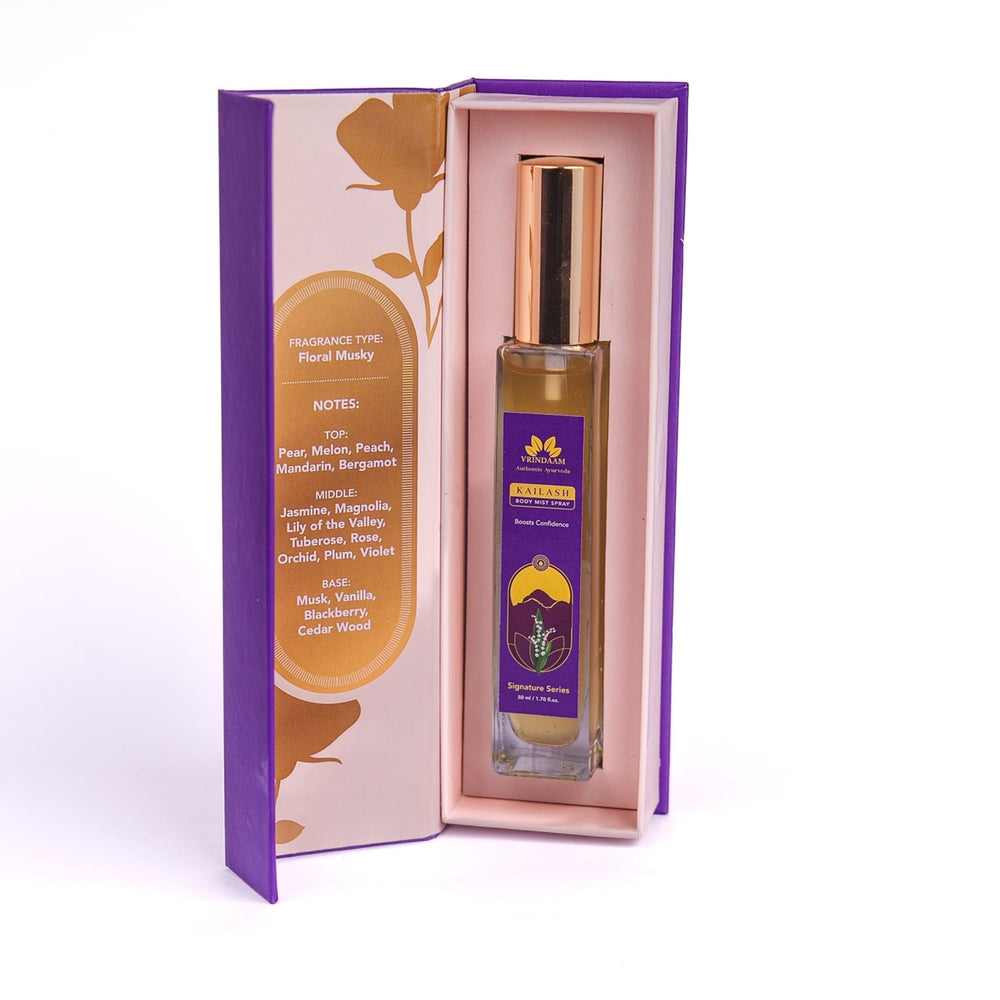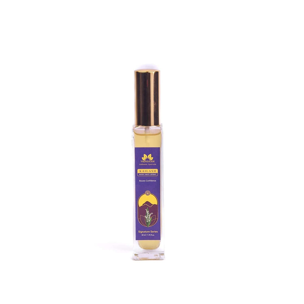Kailash body mist is a lightweight, refreshing fragrance with a low concentration of perfume oils, designed for a subtle and short-lasting scent.